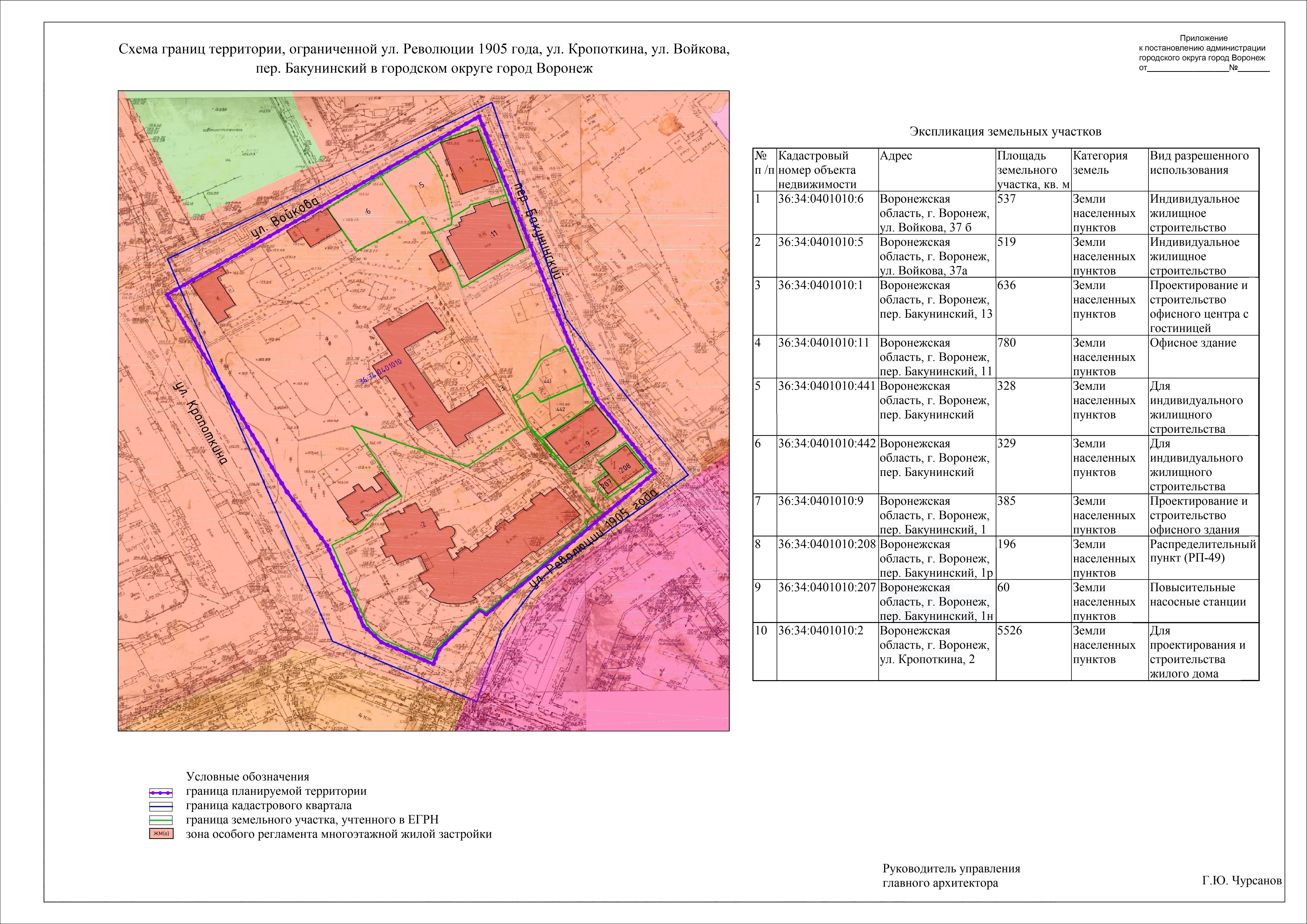 Схема границ территории, ограниченной ул. Революции 1905 года, ул. Кропоткина, ул. Войкова, пер. Бакунинский в городском округе город Воронеж