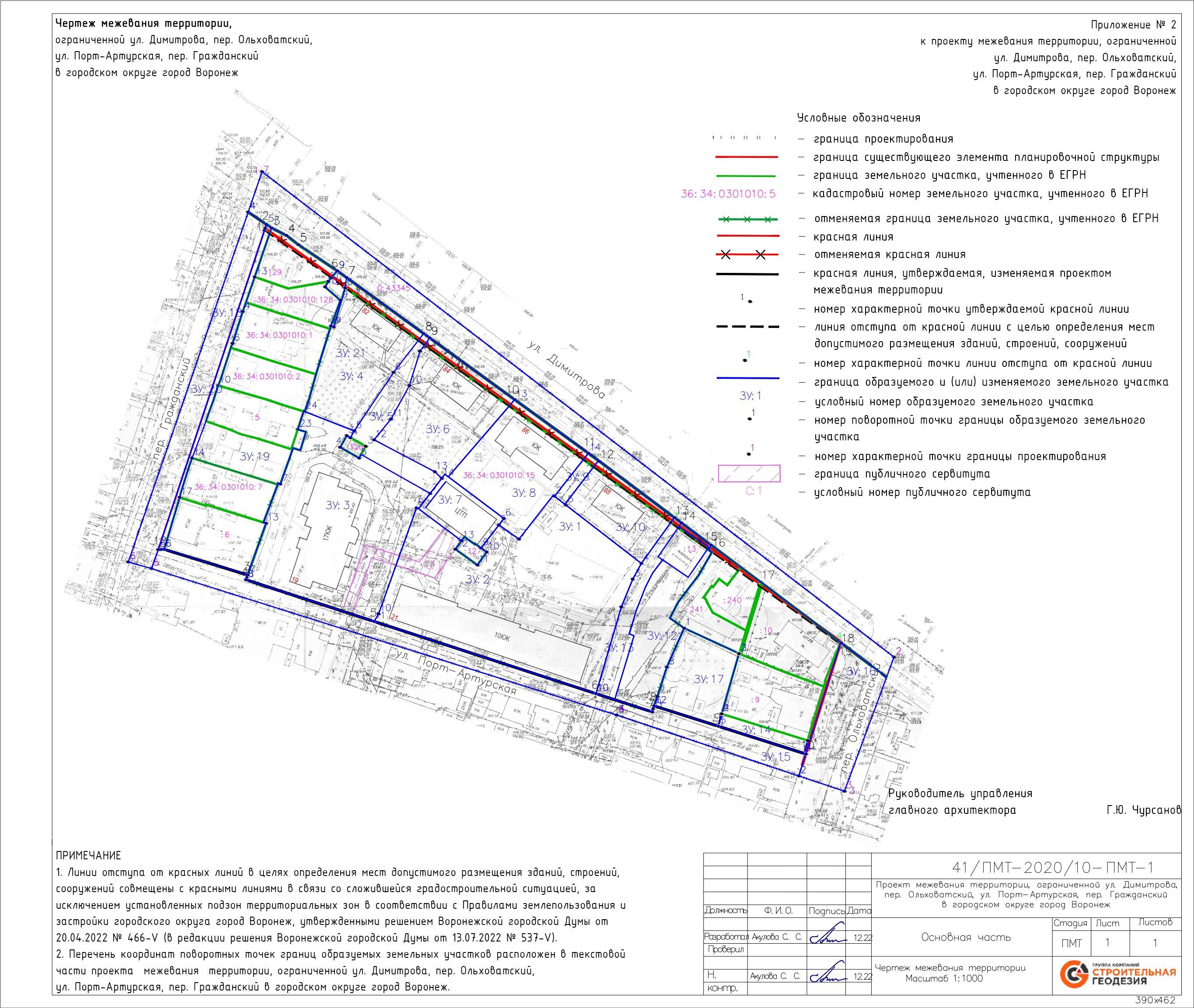 Проект межевания территории, ограниченной ул. Димитрова, пер. Ольховатский, ул. Порт-артурская, пер. Гражданский в городском округе город Воронеж
