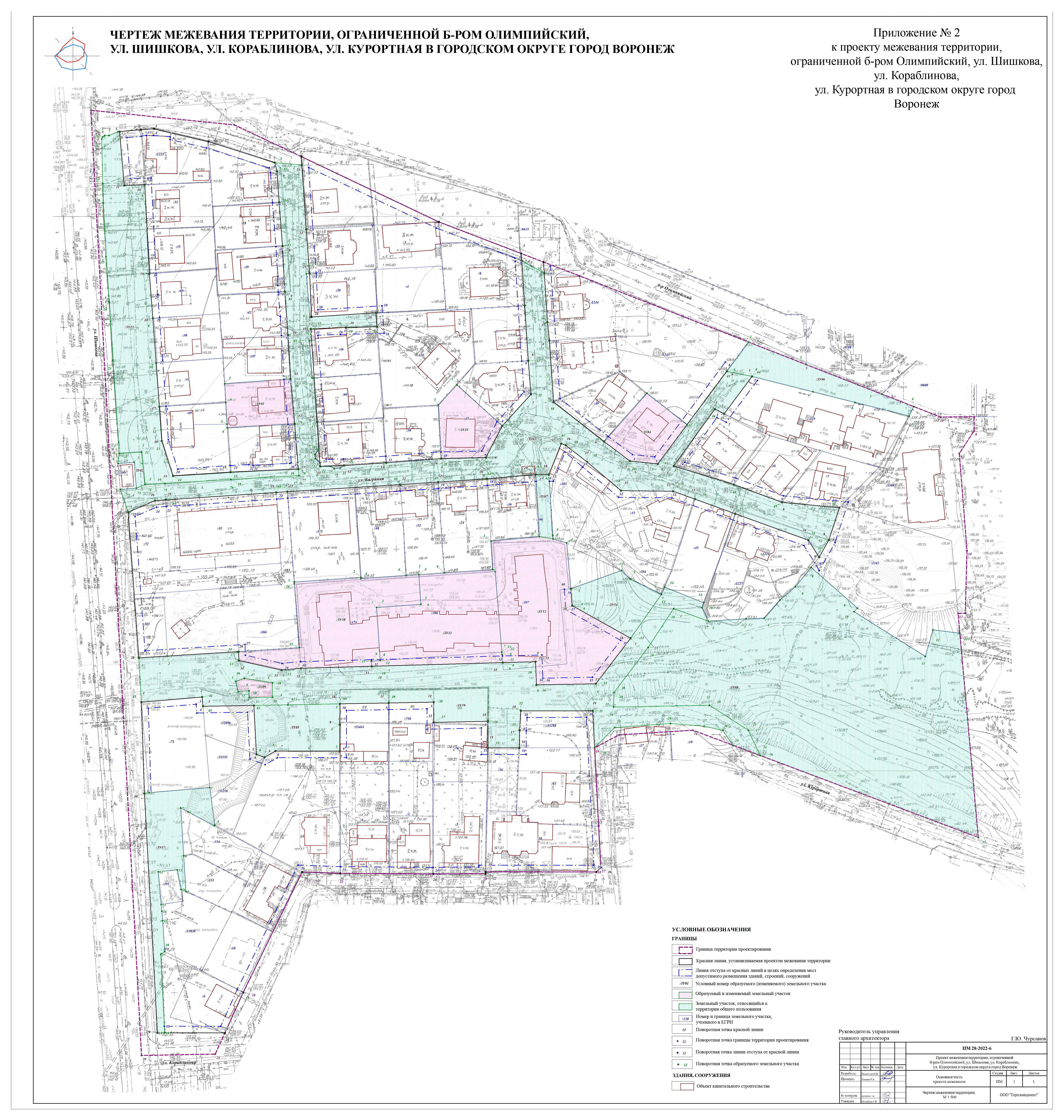 Проект межевания территории, ограниченной б-ром Олимпийский, ул. Шишкова, ул. Кораблинова, ул. Курортная в городском округе город Воронеж