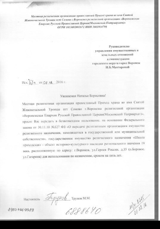 Обращение о передаче религиозным организациям имущества религиозного назначения от 281216