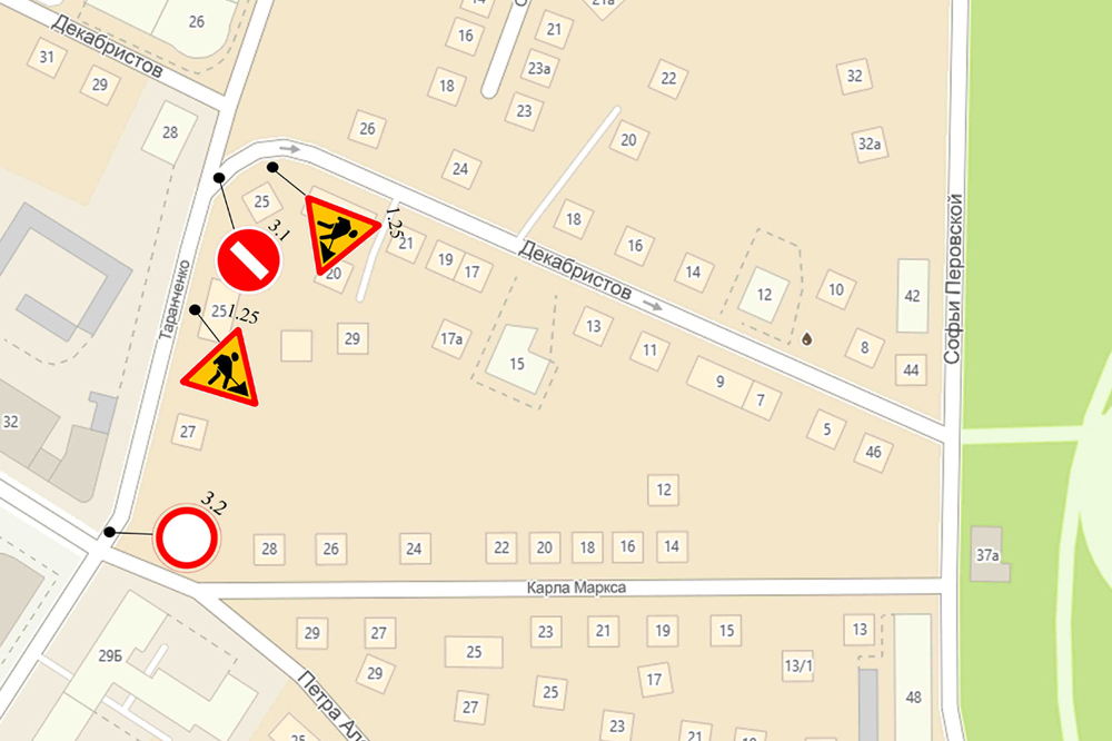 В связи с проведением работ по уборке проезжей части с 22:00 22 февраля до 6:00 23 февраля будет ограничено движение автотранспорта по участку улицы Таранченко (от улицы Карла Маркса до улицы Декабристов) и закрыто движение по участку улицы Декабристов (от улицы Таранченко до улицы Софьи Перовской).