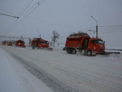 Работы по уборке города ведутся круглосуточно. В ночную смену количество техники будет увеличено, на городские улицы комбинаты выведут дополнительные погрузочные и самосвальные машины для массового вывоза снега, сметенного с дорог в течение дня (к сожалению, днём эти работы невозможно производить в большом объёме из-за интенсивного движения и припаркованных машин).Районные комбинаты благоустройства обращаются к автолюбителям с просьбой не парковать в ночное время автомобили на магистральных дорогах, чтобы не препятствовать работам по массовому вывозу снега.