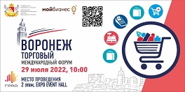 В рамках форума, приуроченного ко Дню работника торговли, 29 июля состоится пленарное заседание с участием иностранных делегатов, субъектов торговли, товаропроизводителей, жителей Воронежской области и соседних регионов.Регистрация участников по ссылке: https://moibiz36.ru/