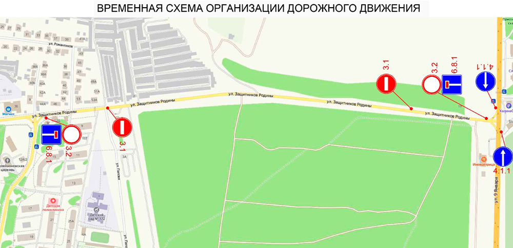 В течение 3 дней на 10 часов будет закрываться движение по участку улицы Защитников Родины