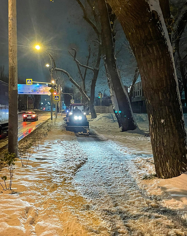 Работа продолжалась всю ночь, было задействовано 174 единицы специализированной техники, на обработку улиц использовали 1973 тонны песко-соляной смеси. Пока не было осадков, вёлся и вывоз: с улиц города на полигоны уехало 710 кубометров снега.