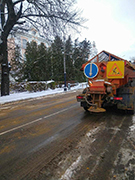 На улицы оперативно были направлены пескоразбрасыватели для проведения сплошной обработки улиц песко-соляной смесью, ими израсходовано 1073 тонн противогололёдного материала.