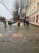 В посыпке улично-дорожной сети задействовано 11 КДМ, на тротуарах работает 8 единиц техники, порядка 65 работников ручной уборки. Не на каждой тротуарной части есть возможность проехать спецмашине для посыпки и равномерного распределения песко-соляной смеси. Поэтому эта задача ложится на плечи уборщиков территорий. Для этого на остановках, пешеходных переходах и особо опасных участках – спусках, подъемах, путепроводах – размещено около 130 специальных контейнеров для хранения песка (вместимость каждого – 1 кубометр).