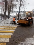 В посыпке улично-дорожной сети задействовано 11 КДМ, на тротуарах работает 8 единиц техники, порядка 65 работников ручной уборки. Не на каждой тротуарной части есть возможность проехать спецмашине для посыпки и равномерного распределения песко-соляной смеси. Поэтому эта задача ложится на плечи уборщиков территорий. Для этого на остановках, пешеходных переходах и особо опасных участках – спусках, подъемах, путепроводах – размещено около 130 специальных контейнеров для хранения песка (вместимость каждого – 1 кубометр).