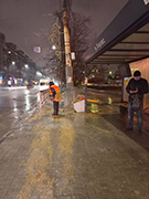 На борьбу с погодным явлением комбинаты благоустройства вышли незамедлительно, в целом по городу и на дорогах, и на тротуарах работало 156 единиц специализированной техники, израсходовано 427 тонн песко-соляной смеси.