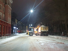 Коммунальные службы продолжали ликвидацию последствий снегопада, покрывшего город днем. 186 единиц спецтехники расчищали городские магистрали – повторялся цикл «обработка/подметание». Вблизи остановочных пунктов и пешеходных переходов, на тротуарах и других общественных территориях работала малая техника, а там, где ее работа была затруднена – очищать городские пространства помогали «ручники».
