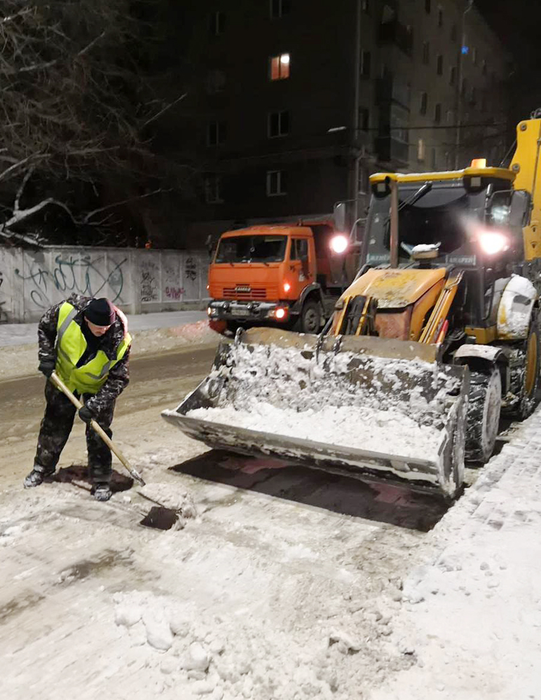 Коммунальные службы продолжали ликвидацию последствий снегопада, покрывшего город днем. 186 единиц спецтехники расчищали городские магистрали – повторялся цикл «обработка/подметание». Вблизи остановочных пунктов и пешеходных переходов, на тротуарах и других общественных территориях работала малая техника, а там, где ее работа была затруднена – очищать городские пространства помогали «ручники».
