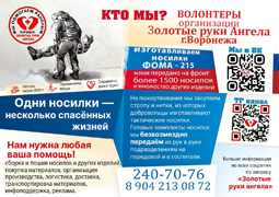 - для сборки и пошива носилок, эвакстроп для экстренной эвакуации раненых, сидушек, подсумок для бойцов и др. При этом опыт не требуется – с изготовлением изделий справляются даже дети. Обучение от представителей организации предусмотрено;Также большую поддержку могут оказать фабрики и ателье, присоединившись к пошиву, неравнодушные горожане, которые готовы предоставить материальную помощь на закупку необходимых материалов и инструментов, а также промышленные швейные машинки. Уточнить подробности можно у координатора проекта Елены по номеру телефона: 8 (904) 213-08-72.