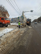 Для предотвращения образования наледи выполнялась обработка песко-соляной смесью – за день было израсходовано около 600 тонн, вывезено на полигоны более тысячи кубометров снега. Ночью, когда интенсивность движения станет минимальной, активно продолжится вывоз снежных масс.