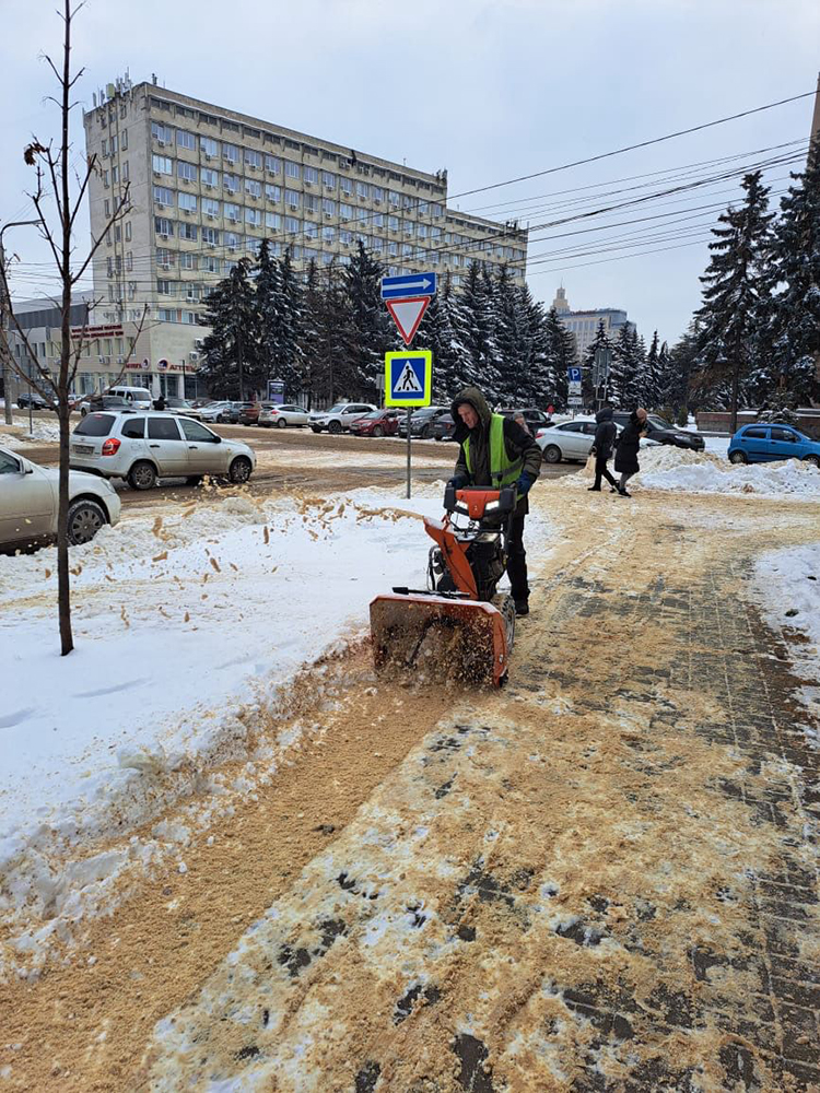 22.11.2023 Несмотря на то, что интенсивные осадки не наблюдались, коммунальная техника продолжала выполнять очистку от снега улично-дорожной сети и общественных пространств.На магистралях задействовались пескоразбрасыватели, тракторы со щетками, различные погрузчики, самосвалы, грейдеры и т.д. – всего почти 170 единиц. На тротуарах и в других труднодоступных местах работала малая коммунальная техника, а также более 300 «ручников».