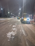 23.11.2023 В ночную смену работали 162 единицы техники и порядка 300 «ручников».При помощи 500 тонн пескосмеси они обрабатывали улично-дорожную сеть и пешеходные зоны. В результате было вывезено еще почти 6 тысяч кубометров снега, с учетом валом, сформированных днем в прилотковой части магистралей.