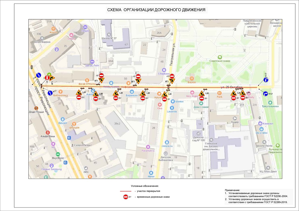21.12.2023 В связи с продолжением уборки городских территорий от снега с 22:00 сегодня, 21 декабря, до 6:00 завтра, 22 декабря, будет закрыто движение автотранспорта на улице 25 Октября – от проспекта Революции до улицы Орджоникидзе.