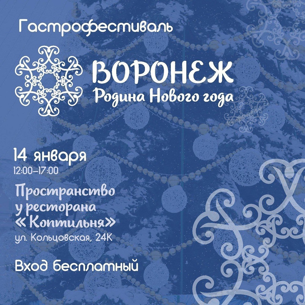 14 января с 12:00 до 17:00 по адресу: Воронеж, ул. Кольцовская, 24К, состоится первый в Воронеже зимний гастрономический фестиваль «Воронеж – родина Нового года»Напомним, в прошлом году наш город получил статус «Родина Нового года». Гастрономический фестиваль – одно из мероприятий в рамках событийного плана большого одноименного проекта.