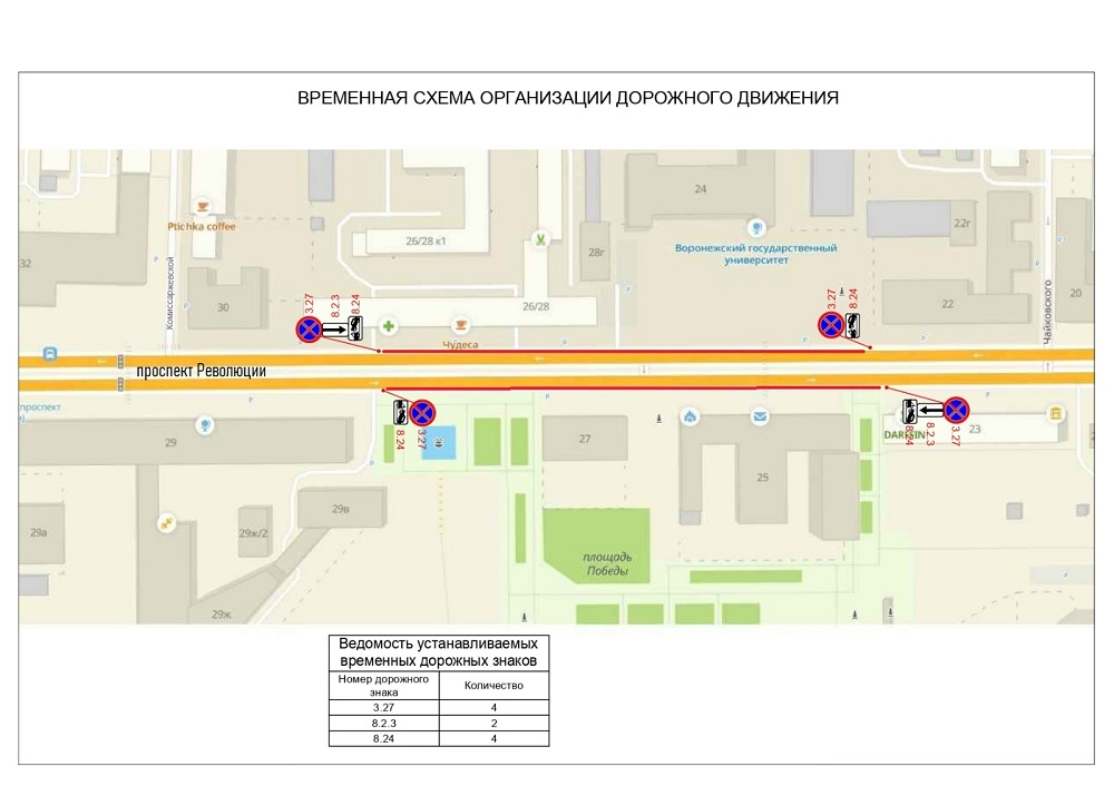 - - с 19:00 21 февраля до 16:00 22 февраля – на Театральном проезде, площади Ленина (от улицы Плехановской до улицы Платонова), улице Пушкинской (от улицы Плехановской до Театрального проезда);
