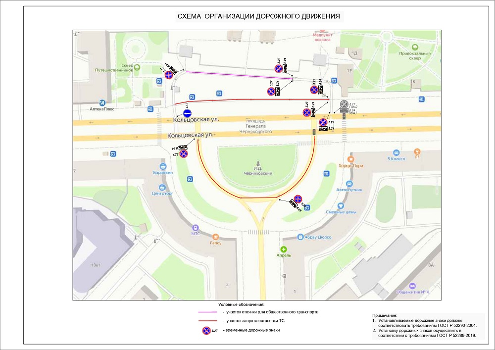22.02.2024 В связи с проведением патриотического мероприятия с 22:00 27 февраля до 15:00 28 февраля согласно схеме будет запрещена парковка (и остановка) автотранспорта в районе памятника Ивану Черняховскому.