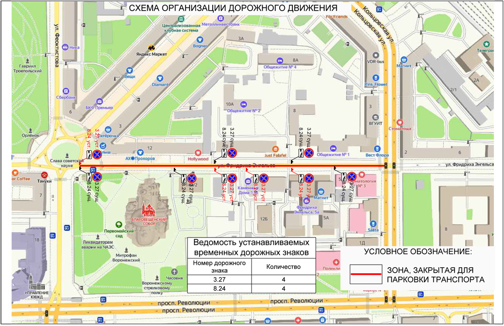 В связи с проведением церемонии возложения венков и цветов к памятному знаку у Благовещенского собора, посвященной международному Дню освобождения узников фашистских концлагерей, с 18:00 10 апреля до 14:00 11 апреля на участке улицы Фридриха Энгельса в районе дома № 14В по проспекту Революции будет запрещена остановка транспортных средств.