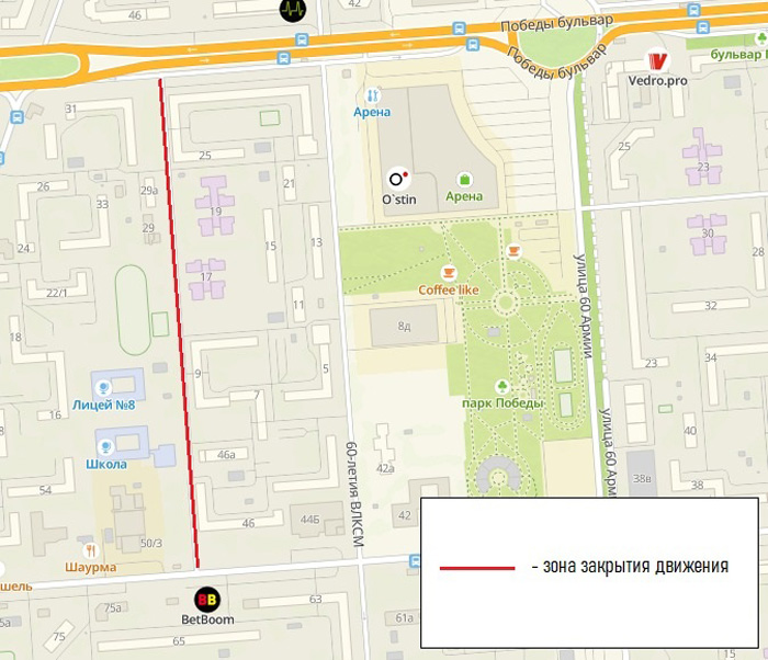 С 23 по 25 мая будет закрыто движение по проезду вдоль школы № 94 и лицея № 8