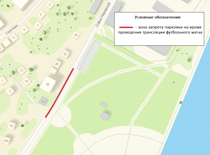 Для повышения безопасности дорожного движения при проведении на Адмиралтейской площади трансляции матча по футболу среди команд клубов Российской Премьер-лиги с 7:00 до 23:00 субботы, 27 июля, будет запрещена парковка автотранспорта напротив домов № 30А и № 28 по улице Софьи Перовской.Напомним, что на выходных также продолжает работу автобусный маршрут № 30 «Адмиралтейская площадь – Петровский сквер». Вместе с тем, желающие посмотреть трансляцию смогут добраться и до остановки «Чернавский мост», через которую из разных районов города следуют маршруты №№ 6, 8, 20, 21, 32, 42, 44, 52, 59, 60, 90, 97, 98, и совершить прогулку к входным группам через Петровскую набережную.