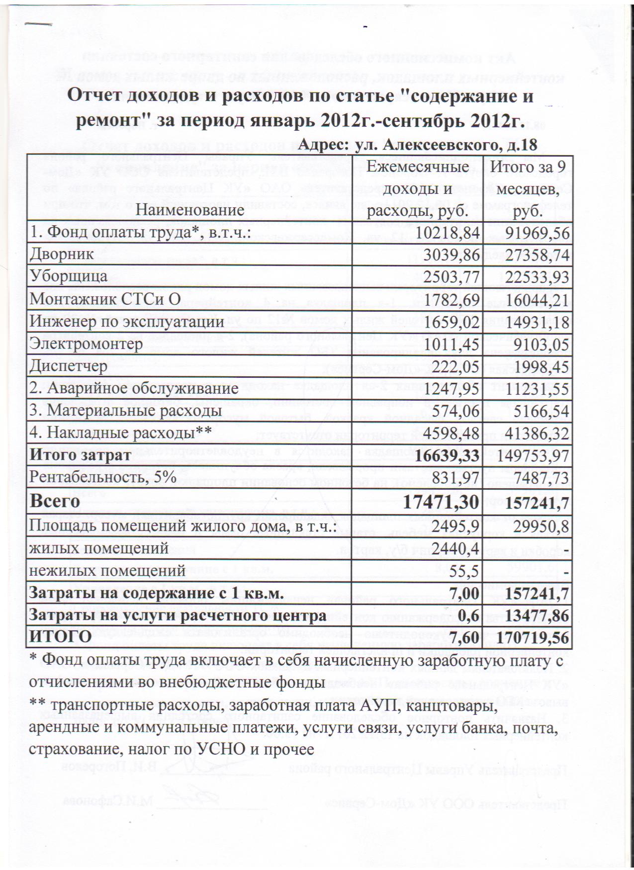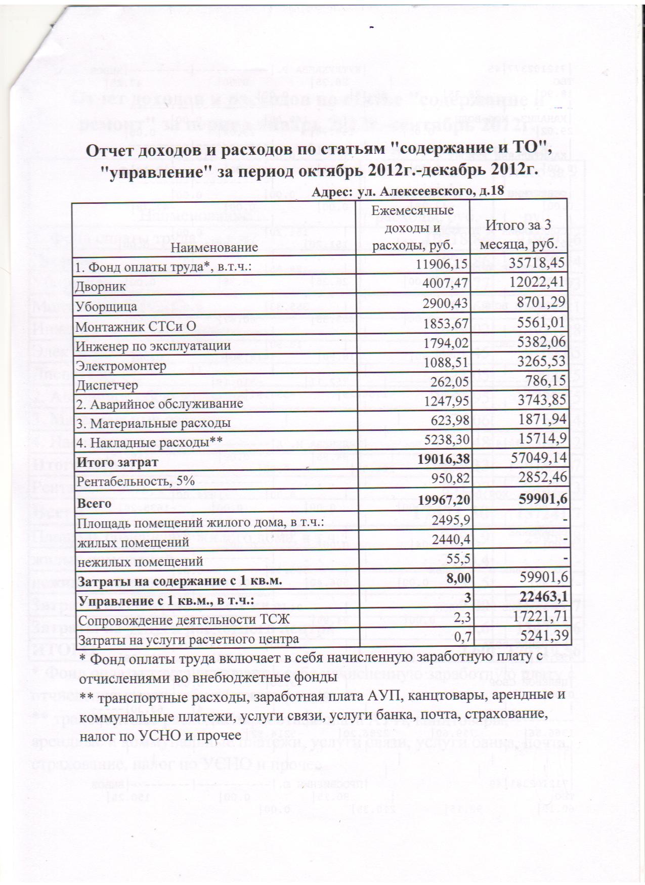 Расходов, понесенных ТСЖ «Алексеевского-18» за оказание услуг по управлению многоквартирными домами – нет.