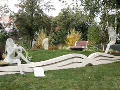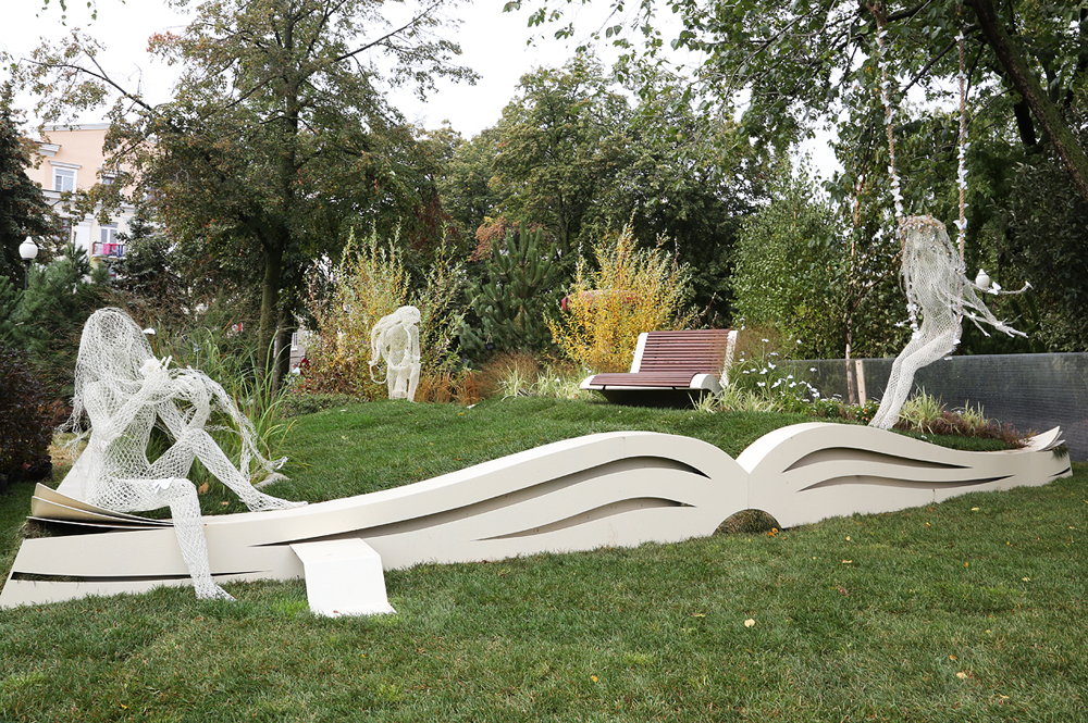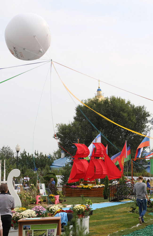 Центральное место «Города-сада» занимает площадка, подготовленная управами районов Воронежа. Экспонаты посвящены видам искусства – музыке, кино, и красоте столицы Черноземья. Огромный корабль с алыми парусами, резной мостик через импровизированную речку, арт-объект из металлических нот и цветов – эти предметы пришлись по душе всем посетителям выставки – очередь из желающих сфотографироваться постоянно растет.