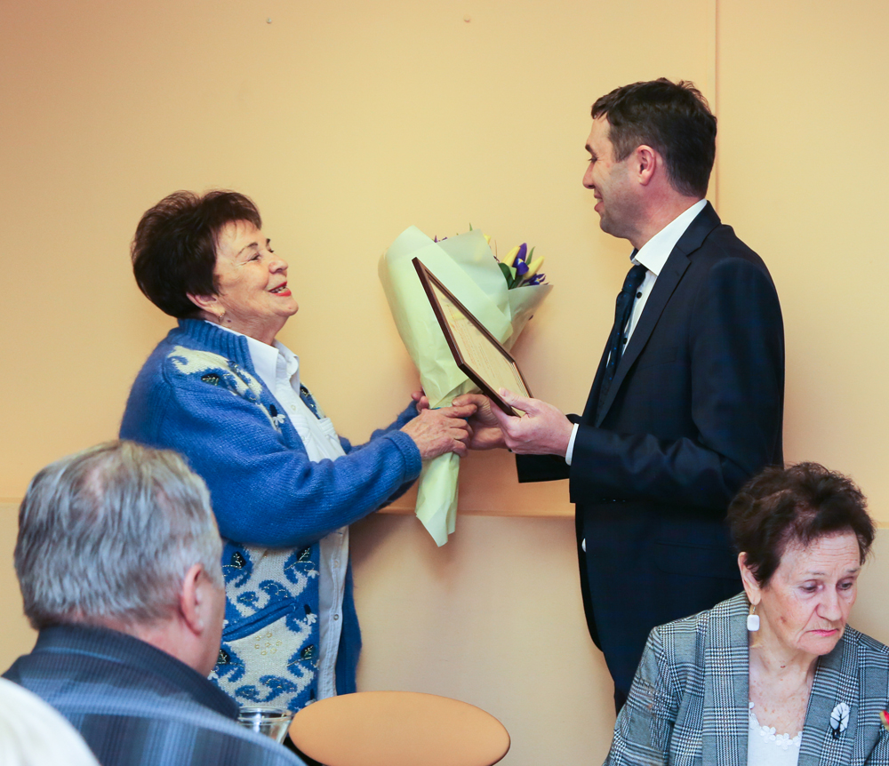 - С.А. Петрин выступил с приветственным словом от администрации городского округа город Воронеж, вручил грамоты и подарки ветеранам Ельшиной Ларисе Тихоновне и Зуевой Фаине Тимофеевне в связи с 80-летием и поблагодарил членов организации за проводимую работу по вовлечению ветеранов в активную социальную жизнь городского округа город Воронеж.