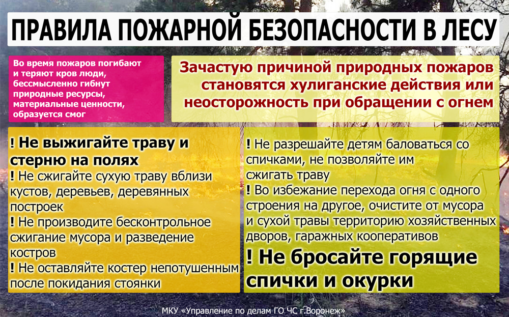 Лесной пожар может возникнуть по любой причине: не потушенный окурок, искра от костра, стекла от бутылок. Будьте внимательны и ответственны.