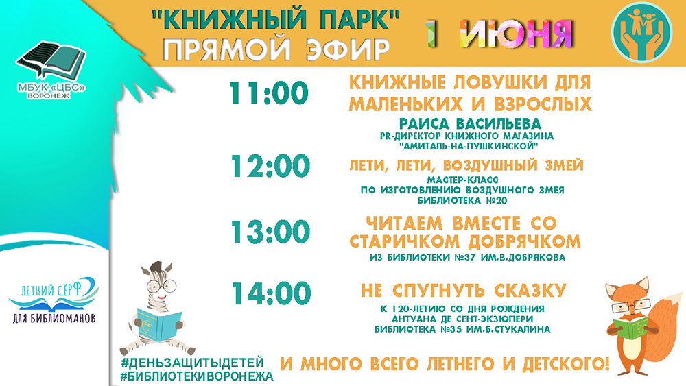 1 июня Централизованная библиотечная система г. Воронежа приглашает всех желающих присоединиться к детской праздничной онлайн-программе "Книжный парк".