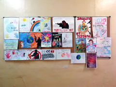 К примеру, учащиеся 13-й школы проводят выставку рисунка «Дети против терроризма».