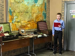 Чего только не было: грамоты и благодарности, военное обмундирование, шлем танкиста, вырезки из газет, медали и ордена, фотографии, дембельские альбомы, бескозырка, фляжка, противогаз, рукописная автобиография и брошюра о боевом пути одного из полков времен Великой Отечественной войны и многое другое.Ребята с интересом рассказывали о своих родственниках, прошедших Великую Отечественную войну, Афганистан, другие горячие точки, о тех, кто служит сегодня. Выставка организована в школьном Зале Памяти.