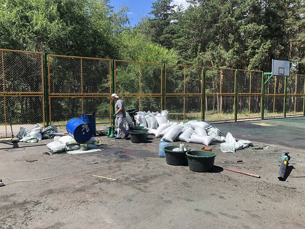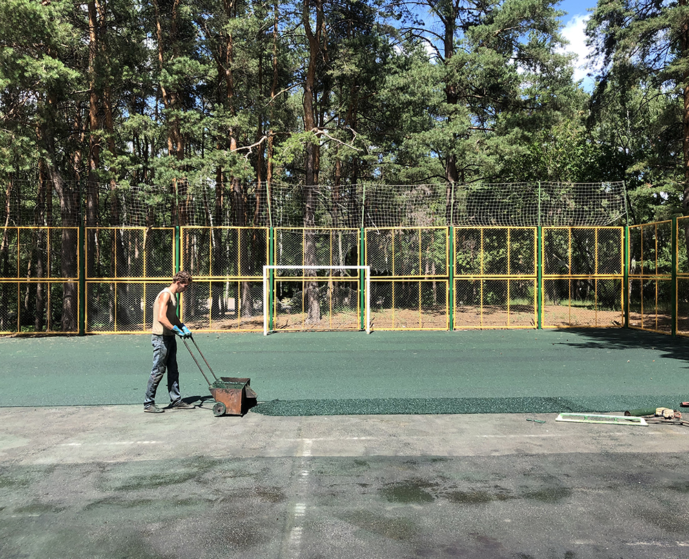 В Воронеже продолжаются работы по ремонту плоскостных спортивных сооружений