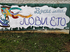 Одним из первых такой рисунок с оптимистичным призывом появился во дворе школы № 13.