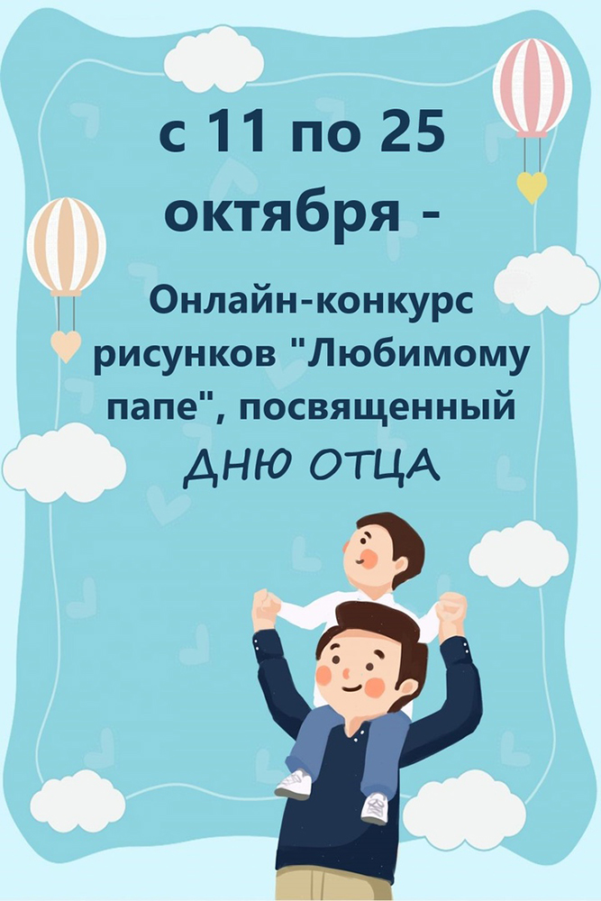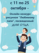 Управа Железнодорожного района приглашает желающих принять участие в онлайн-конкурсе, посвященном Дню отца.До 25 октября присылайте на страницу «Культура Железнодорожного района г. Воронежа» через строку «Предложить новость» рисунки, посвященные свои любимым папам.