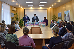 Руководитель управы Леонид Беляев совместно с представителем председателя Воронежской городской Думы Владимира Ходырева поздравили многодетных матерей Железнодорожного района с наступающим Новым годом.Многодетным мамам и членам их семей были вручены сладкие подарки.