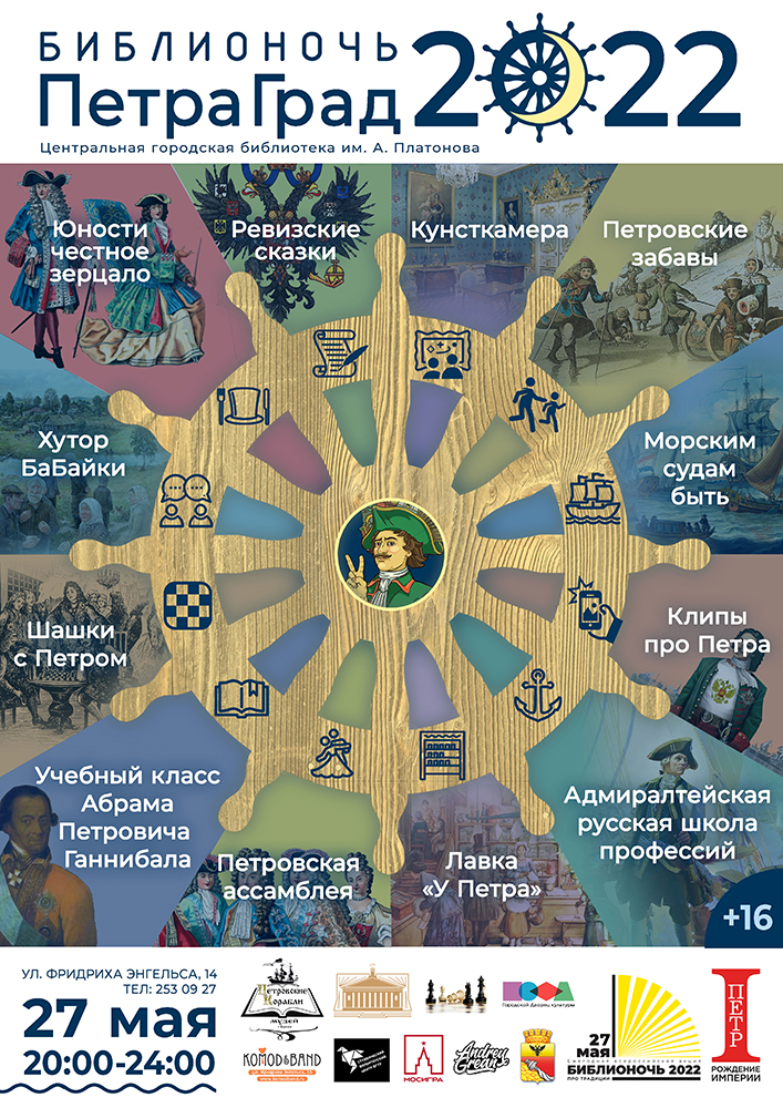 Библиотеки Воронежа приглашают принять участие в «авторском» проекте Петра Первого.27 мая с 17.00 до 23.00 час. в Центральной городской библиотеке имени А.Платонова (ул.Ф.Энгельса, 14) в рамках общероссийской акции пройдет Библионочь – 2022.