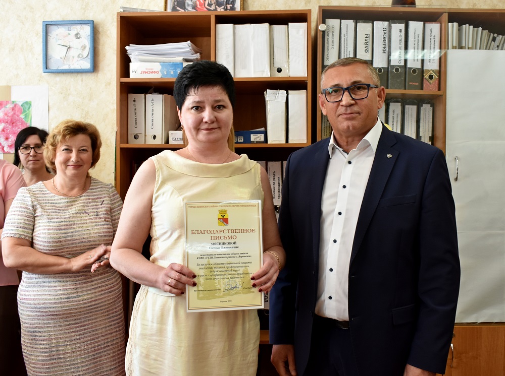 В среду, 8 июня, глава Ленинского района Сергей Ситников вручил благодарственные письма управы района отличившимся сотрудникам КУВО «Управление социальной защиты населения Ленинского района г. Воронежа».По традиции в этот день свой праздник отмечают социальные работники – люди, чье дело не просто профессия, а в полном смысле этого слова служение – помогать тем, кто оказался в сложной жизненной ситуации.