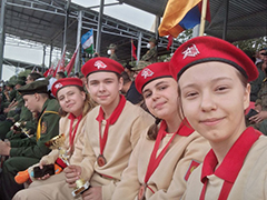 – В воинскую часть мы приехали рано утром. Дождались команды и организованной колонной проследовали на плац, где прошло открытие игр и строевой смотр. Сдав рапорт, мы прошли торжественным маршем под аккомпанемент оркестра. Игры официально открыты. Нам выдали мерч: футболка, кепка, браслет, значок и сумка для обуви. И началось самое интересное – испытания. На все нам дали два часа. Сначала прошли историческую викторину. Задания были сложные, но мы справились! И проследовали к следующему этапу – попробовали себя в вождении танка и машины на электронных тренажёрах. Было сложно - мы застревали в грязи, даже заезжали в горы, – делятся впечатлениями ребята.Потом были разборка-сборка автомата, стрельба из пневматической винтовки, преодоление полосы препятствий в сложных погодных условиях.