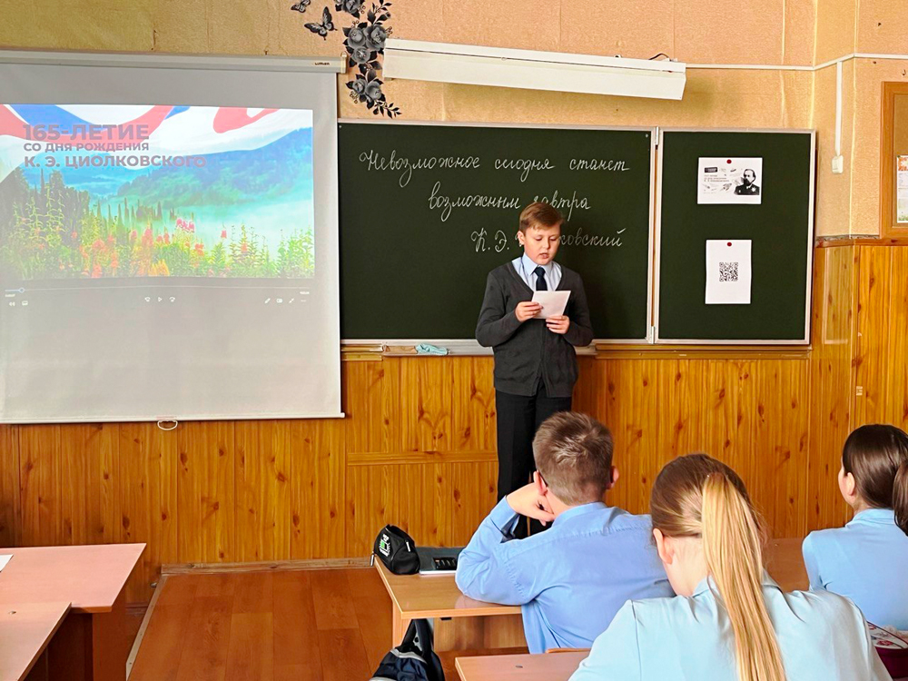 Классный час, состоявшийся 19 сентября, взрослые и дети посвятили 165-летию со дня рождения Константина Циолковского, которое отмечалось в этот день.