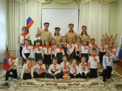 Встреча прошла в теплой дружеской обстановке. Малыши собирали эмблему Юнармии, рассказывали о государственных символах, провели импровизированный смотр строя и песни, исполнили несколько концертных номеров. Затем за чашкой чая взрослые и дети обсудили дальнейший план интересного сотрудничества. Юнармейцев всюду сопровождал плюшевый талисман «Степан».