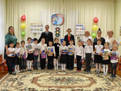 Затем ребята дали символическую клятву. Куратор Ленинского и Советского районов от ОГИБДД УМВД России по г. Воронежу по линии пропаганды безопасности дорожного движения, капитан полиции Олег Самойлов вручил членам отряда удостоверения и памятные подарки.– Роль дошкольных учреждений в предупреждении дорожно-транспортного травматизма велика, так как систематическая, целенаправленная, правильная воспитательная работа с дошкольниками помогает в последующем сохранить им жизнь и здоровье, обеспечивает самостоятельность и осознанность поведения на улице, – сказал Олег Самойлов.