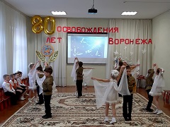 Школьники Ленинского района выступили с инициативой проведения тематических мероприятий совместно с воспитанниками дошкольных образовательных учреждений.На днях в центре развития ребёнка - детском саду №103 при поддержке социальных партнёров - юнармейцев школы №13, состоялось торжественное мероприятие, посвященное восьмидесятой годовщине освобождения г. Воронежа от немецко-фашистских захватчиков.