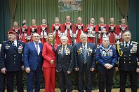 Зал поклонился Надежде Кудиновой, Нелли Морозовой, Любови Родионовой - мамам, воспитавшим героев – Дмитрия Кудинова, Романа Морозова и Дмитрия Родионова, погибших при выполнении воинского долга во время специальной военной операции.