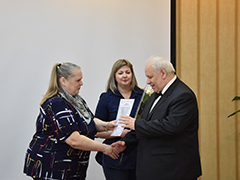 Также в этот день особую благодарность за вклад в развитие культуры Железнодорожного района получил заслуженный артист Российской Федерации, профессор, преподаватель Детской школы искусств № 5 им. Ю.Б. Романова по классу ансамбля и оркестра Александр Рыженков, который за годы работы в музыкальной школе воспитал не одно поколение талантливых музыкантов. После официальной части всем присутствующим вручили поздравительные адреса, цветы и подарки, подготовленные совместно с депутатами Воронежской городской и областной Дум.