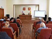 Темой выступления майора полиции стала профилактика преступлений, связанных с мошенничеством. Нередки случаи обмана граждан с целью завладения их денежными средствами и другим имуществом. Злоумышленники зачастую, в общении с гражданами, представляются сотрудниками различных финансовых организаций, а не редко и сотрудниками правоохранительных органов.