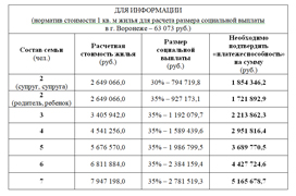 - 30 процентов расчетной (средней) стоимости жилья – для молодых семей, не имеющих детей;Расчетная (средняя) стоимость жилья, используемая при расчете размера социальной выплаты, определяется исходя из норматива стоимости 1 кв. м общей площади жилья по муниципальному образованию, установленного для расчета размера социальной выплаты, и размера общей площади жилого помещения (для семьи, состоящей из 2 человек – 42 кв. м; для семьи, состоящей из 3 или более человек – по 18 кв. м на 1 человека).