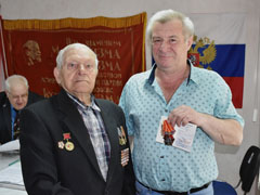 В соответствии с решениями Комиссии по общественным медалям и Памятным знакам и Совета ОООВ ВС РФ заслуженную награду вручил герой Великой Отечественной войны, подполковник авиации в отставке Павел Семенович Мошканцев.