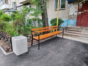 По указанному адресу заменены бордюры, заасфальтирован проезд, парковка и тротуарные дорожки, установлены лавочки, урны, ограждение и детское игровое оборудование.